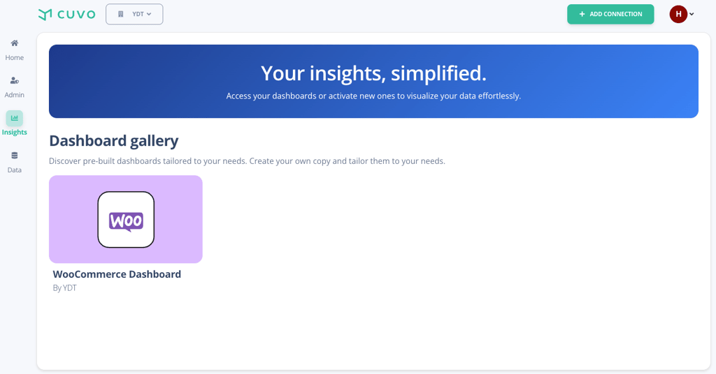 Primero de todo, asegúrate de que ya has conectado tus aplicaciones a Cuvo, necesitarás los datos para poner tu dashboard en marcha. Si tienes dudas de cómo hacerlo, échale un vistazo al blog "Cómo conectar tus aplicaciones a Cuvo.".