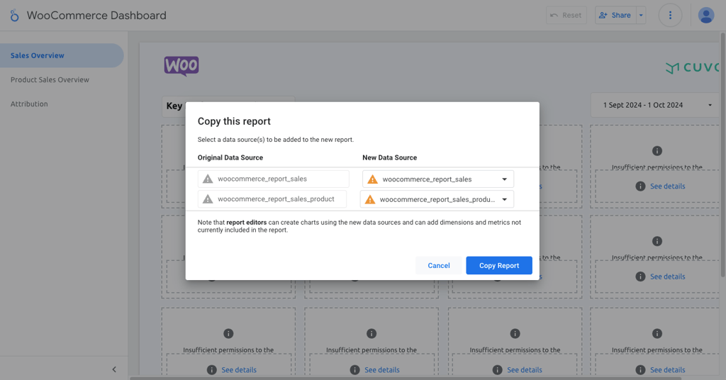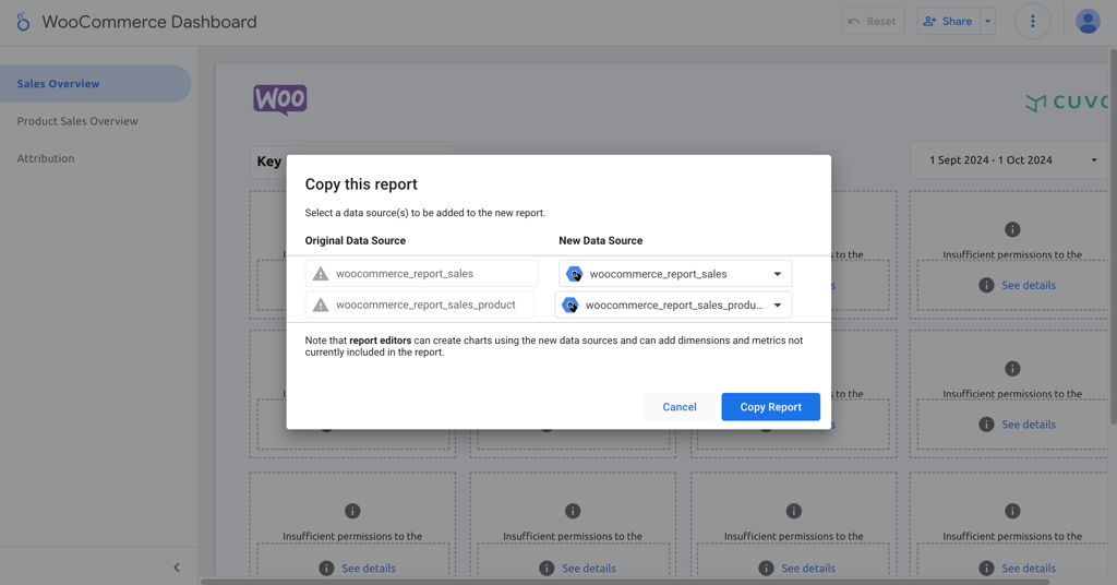 Siguiendo estos pasos, podrás copiar y personalizar cualquier dashboard de Cuvo en Looker Studio, conectándolo a tus propios datos para obtener insights personalizados de tu negocio.