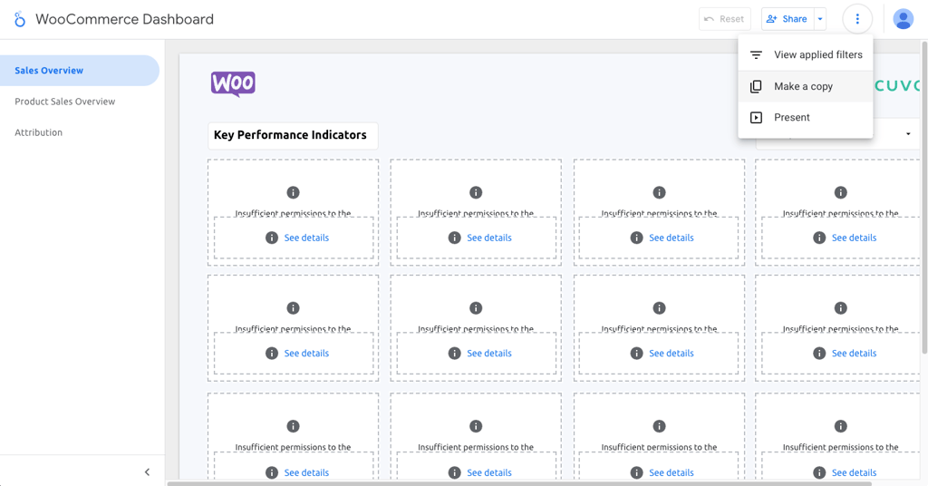 Selecciona "Make a copy" para crear una copia del dashboard en tu cuenta de Looker Studio.