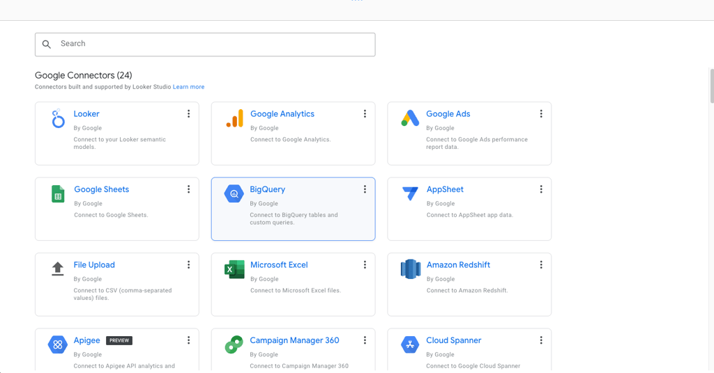 Si es la primera vez que usas esta tabla, haz clic en "Create data source" al final de la lista para conectar tu tabla de Cuvo a Looker.